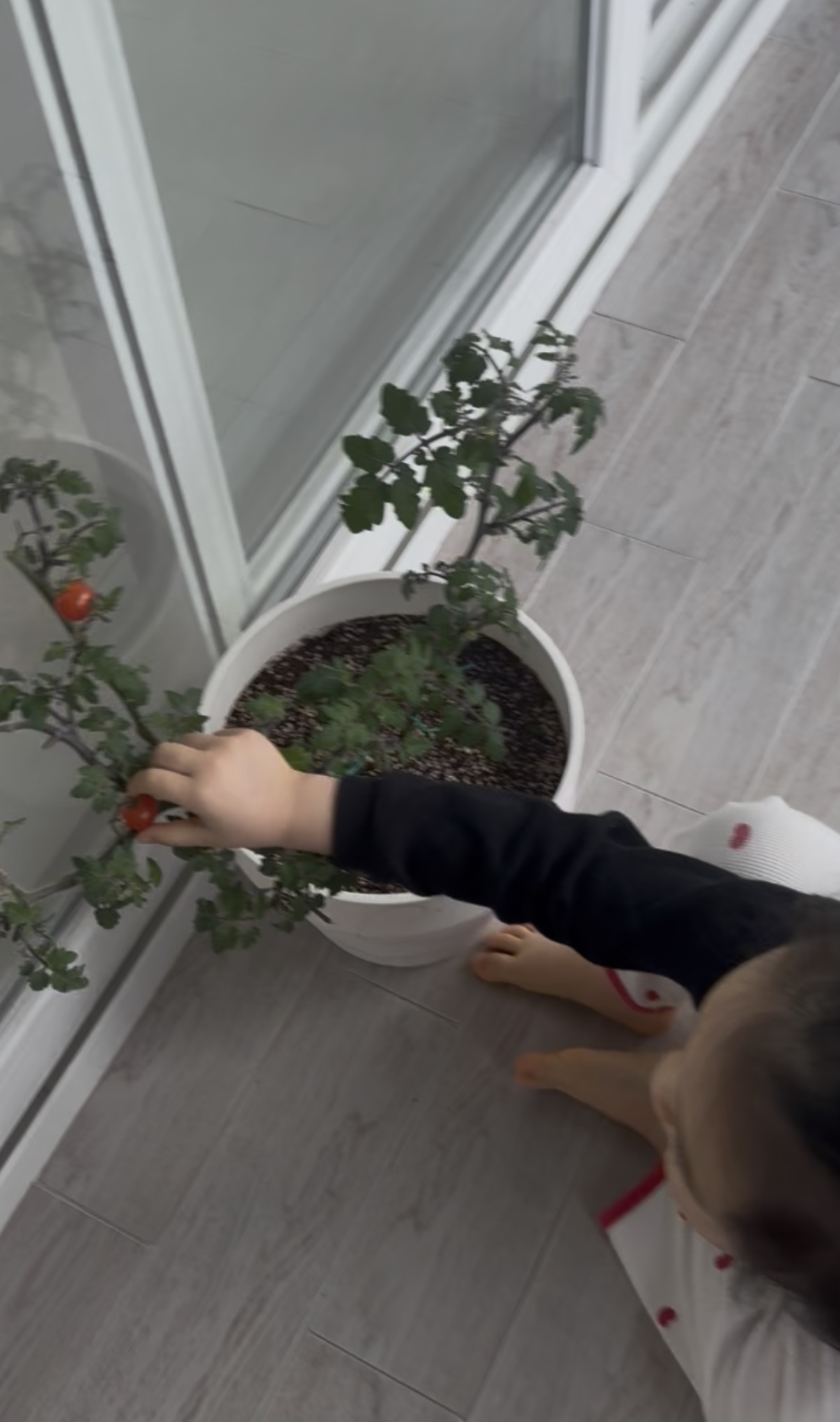 드디어 수확한 첫 방울토마토! 평소 채소를 멀리하던 아이도 자기가 직접 키운 토마토 앞에서는 눈을 반짝입니다.
